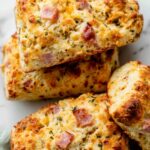 Delight in these savory ham and cheese scones, featuring a perfect blend of sharp cheddar, fresh chives, and tender ham. These buttery, flaky scones are ideal for breakfast or a savory snack, baked to golden perfection with a crispy exterior and tender crumb inside.