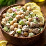 A healthy and flavorful Tuna Garbanzo Bean Salad combining protein-rich tuna and chickpeas with a tangy homemade dressing, perfect for sandwiches, wraps, or a light meal served over greens.