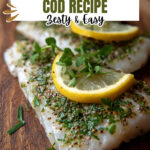 A simple and flavorful Lemon Baked Cod recipe featuring tender cod fillets topped with a zesty lemon butter sauce and fresh parsley, baked to perfection for a light and healthy meal.