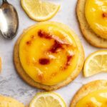 Delight in these Lemon Crème Brûlée Cookies featuring a zesty lemon sugar cookie base topped with smooth lemon pastry cream and a caramelized brûlée sugar crust, perfect for a refreshing dessert treat.