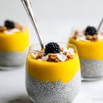 A refreshing and nutritious Mango Chia Pudding made with chia seeds soaked in non-dairy mylk, sweetened with pure maple syrup, and topped with a smooth mango puree. This easy no-cook recipe is perfect for a healthy breakfast or snack.