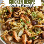 Moo Shu Chicken is a flavorful Chinese stir-fry dish featuring tender chicken strips, shiitake mushrooms, cabbage, and eggs cooked in a savory hoisin-based marinade and sauce. Perfect served with warm tortillas or mandarin pancakes.