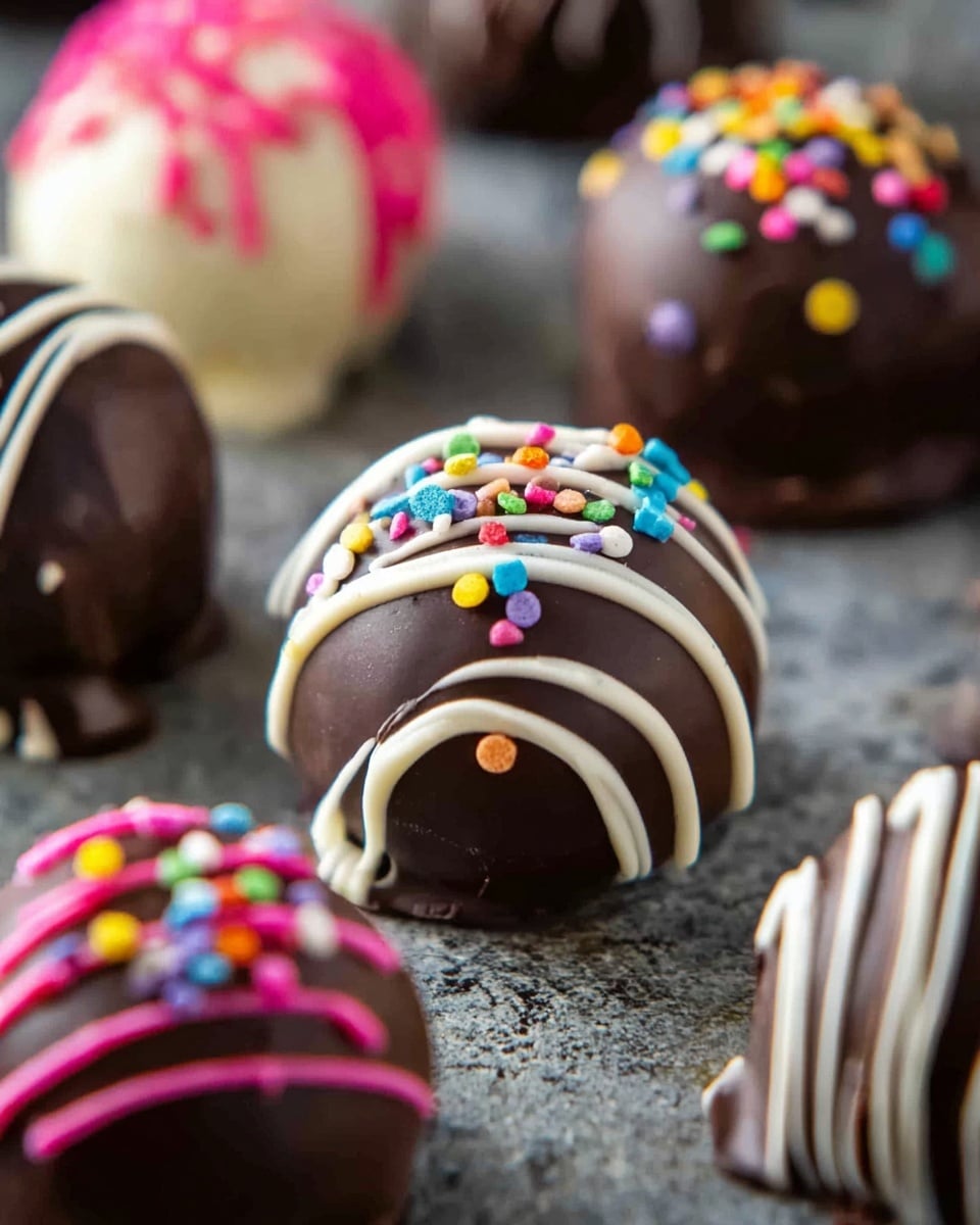 I’m a big fan of simple but striking garnishes—think rainbow sprinkles for a fun party vibe or finely crushed peppermint for a holiday twist. Sometimes a drizzle of contrasting chocolate adds that gourmet look, and the slight texture makes the truffles extra satisfying.