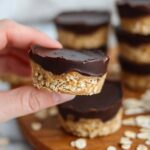 - Add Chocolate Topping: Pour a layer of melted chocolate over the peanut butter oat cups and smooth with the back of a spoon. Optionally, sprinkle flaky salt, sprinkles, or mini chocolate chips before the chocolate sets.