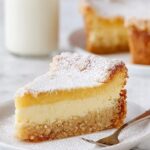 Pour the creamy filling right over the pressed cake batter. It will spread somewhat as you do this, but that’s exactly how it should be. Bake for about 35-45 minutes. Here’s my golden rule: take it out when the edges are beautifully browned but the center still jiggles slightly — this keeps the cake moist and luscious. Overbaking can dry it out, so keep a close eye near the end!