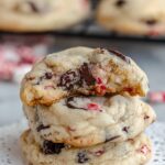 Right out of the oven, leave the cookies on the hot sheet for 2-3 minutes to set before carefully transferring them to parchment paper. If you see some puffy tops, gently tap them down with the flat side of your spatula. I love pressing extra peppermint pieces or chocolate chips on top while they’re still warm—it makes them look extra special and adds a bit of melty chocolaty goodness.