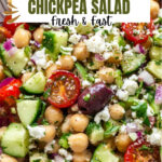 A quick and refreshing 10-minute Mediterranean Chickpea Salad packed with fresh vegetables, tangy olives, and a zesty homemade dressing, perfect for a healthy lunch or side dish.