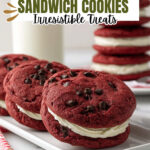 Delicious homemade red velvet sandwich cookies featuring soft, cocoa-infused cookies filled with a creamy vanilla cream cheese frosting. Perfect for parties or a special treat, these cookies combine classic red velvet flavor with chocolate chips for an extra indulgent touch.