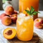 This one’s best served cold, so I don’t recommend reheating. If you like a warm twist, consider using the peach syrup warmed as a base for tea instead. Otherwise, keep chilled and enjoy fresh.
