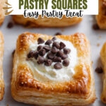 Delight in these Ricotta Chocolate Chip Pastry Squares, featuring flaky puff pastry filled with creamy ricotta and sweet chocolate chips, finished with a sprinkle of coarse sugar for the perfect crunch. Ideal for breakfast, dessert, or a sweet snack.