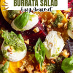 This Easy Roasted Beet and Burrata Salad combines sweet roasted beets with creamy burrata cheese, fresh citrus slices, crunchy pistachios, and vibrant basil oil for a colorful and flavorful dish perfect as a light lunch or elegant appetizer.