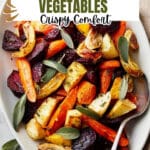 A vibrant medley of roasted root vegetables seasoned with fresh herbs and finished with crispy sage and sage-infused olive oil for a flavorful and elegant side dish.