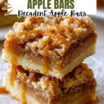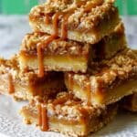 These Salted Caramel Apple Pie Bars combine a buttery shortbread crust with a spiced apple filling and a crunchy oat streusel topping, all drizzled with rich salted caramel sauce. Perfect for a sweet snack or dessert, they offer the comforting flavors of apple pie in a convenient bar form.
