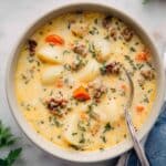 Yes! This Sausage Potato Soup Recipe freezes very well. Just cool completely before freezing and thaw in the refrigerator overnight before reheating gently. Cheese soups sometimes separate slightly after freezing, but stirring well while reheating brings it back to creamy perfection.