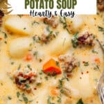 A rich and comforting Italian sausage potato soup featuring tender potatoes, savory sausage, and a creamy cheddar cheese base, perfect for a hearty meal served with buttered bread.