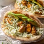 A flavorful and easy sheet pan recipe featuring tender, spiced chicken pieces baked to perfection and served in warm pitas with a refreshing herby ranch slaw and creamy avocado. Perfect for a quick, healthy dinner.