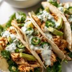 Delicious shredded chicken tacos elevated with a creamy chimichurri sauce, sautéed jalapenos, and fresh toppings for a flavorful and satisfying meal.