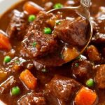 This hearty Slow Cooker Beef Stew features tender chunks of stew meat simmered with carrots, potatoes, onions, and garlic in a rich broth enhanced with red wine and herbs. Slow cooking ensures tender meat and flavorful vegetables, finished with peas and an optional butter swirl for a velvety texture. Perfect for a comforting dinner any day.
