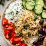 This Slow Cooker Greek Chicken recipe features tender, juicy chicken simmered with aromatic herbs, garlic, lemon juice, and onions for a flavorful and effortless meal. Perfect to serve with rice, pasta, pita, or as a topping for a Greek salad.