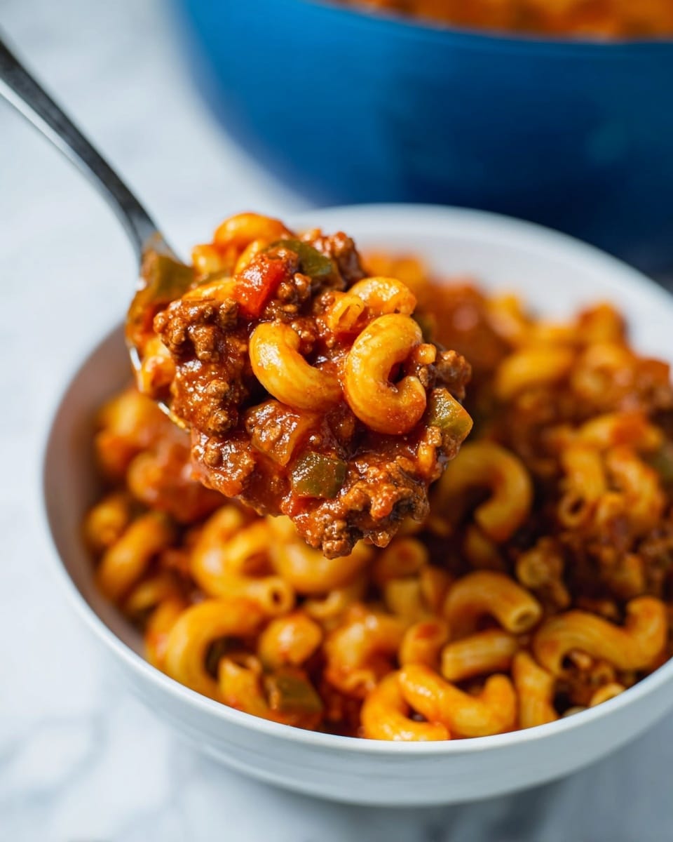 Absolutely! Brown your beef and sauté veggies on the stovetop first, then transfer everything into a slow cooker. Add all the liquids and seasonings, and cook on low for 4-6 hours. Add dry macaroni during the last 30 minutes to prevent it from getting mushy.