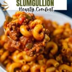 Slumgullion is a hearty, comforting one-pot dish featuring ground beef, vegetables, macaroni, and a rich tomato-based sauce, all cooked together and topped with melted cheddar cheese for a satisfying meal perfect for family dinners.