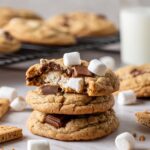 Delight in these gooey, indulgent S’mores Cookies featuring a perfect blend of graham crackers, melted marshmallows, and both milk and semisweet chocolate chips baked to golden perfection.