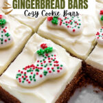 Once baked, let your bars cool completely in the pan before you cut them. If you want to take these over the top, spread a layer of cream cheese or vanilla frosting on top and maybe even add some festive Christmas sprinkles to brighten things up.