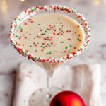 This delightful Sugar Cookie Martini combines the creamy sweetness of vanilla vodka, Irish cream, and amaretto with a touch of powdered sugar and milk. Rimmed with vanilla frosting and colorful sprinkles, this cocktail is a festive and indulgent treat perfect for celebrations or a special dessert drink.