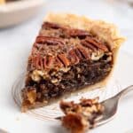Freezing is totally doable with this pie! I wrap it in plastic wrap and then foil tightly to prevent freezer burn. When you’re ready, thaw overnight in the fridge and reheat gently (see below). Just note: the texture of pecans softens a bit after freezing, but the chocolatey goodness stays intact.