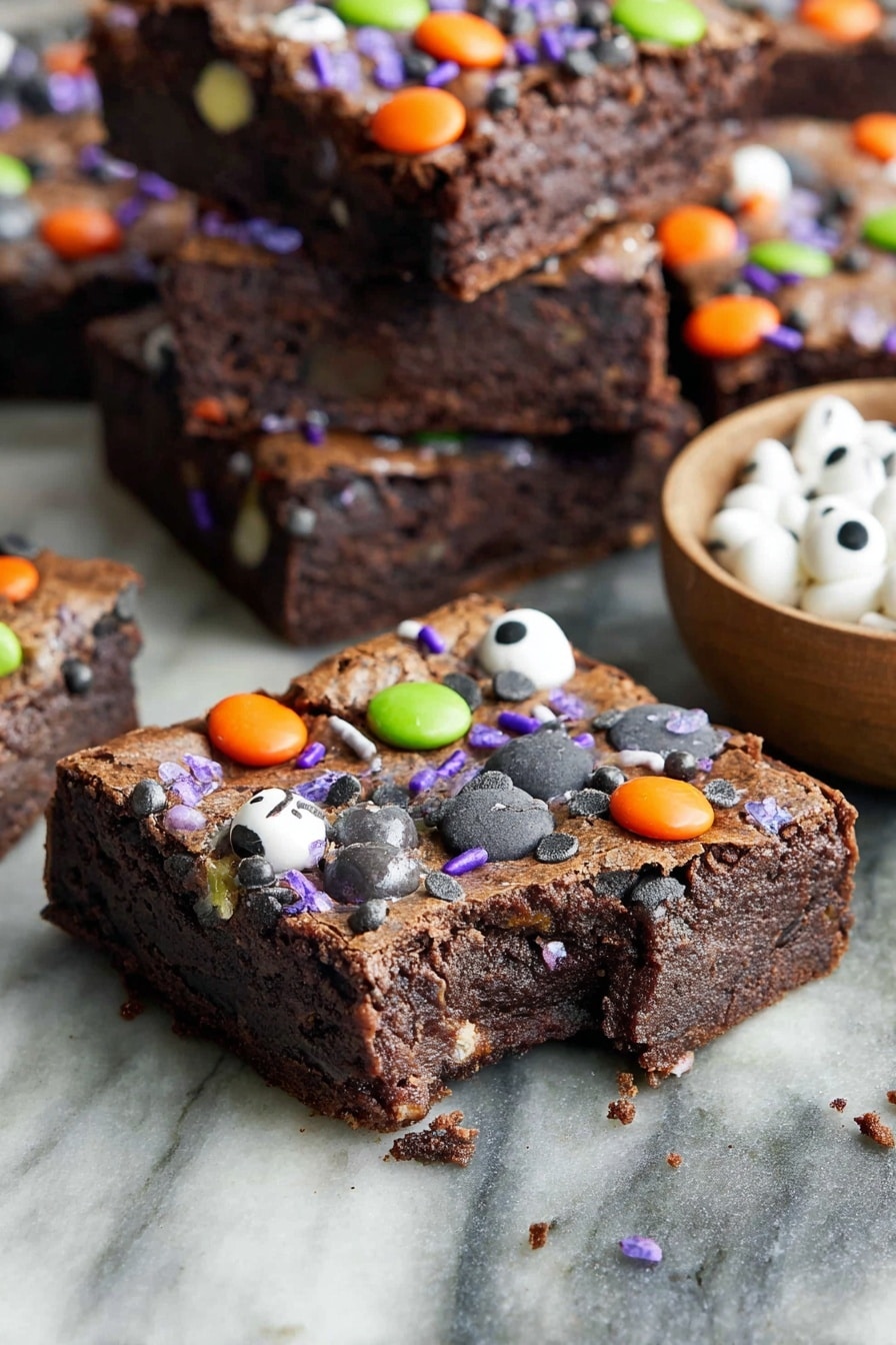 - Seasonal Twist: Beyond Halloween, swap the candy eyeballs and M&Ms for peppermint or crushed candy canes in winter for festive brownies year-round.