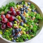 This salad isn’t ideal for freezing because of the fresh fruits, kale, and yogurt-based dressing, which don’t freeze and thaw well. I recommend keeping any extra quinoa or edamame on their own in the freezer, then assembling fresh salad portions as needed.