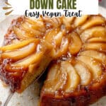 A moist and flavorful vegan apple upside down cake featuring a caramelized apple topping with warm spices, perfect for a cozy dessert or special occasion.