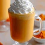 For a festive touch during fall gatherings, I’ve served this latte in clear glass mugs to show off the creamy, frothy layers. Adding a cinnamon stick as a stirrer not only looks pretty but infuses a bit more warm spice. Also, mini pumpkin-shaped marshmallows (vegan, of course) on top make it super cute for parties!