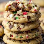 - Fold in Chips and Peppermint: Gently fold the semi-sweet chocolate chips, white chocolate chips, and crushed peppermint candies into the dough to evenly distribute these festive mix-ins throughout.