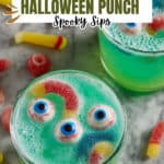 5. Serve: Pour the punch into individual glasses and hang two gummy worms off the sides of each glass for a fun and spooky garnish.